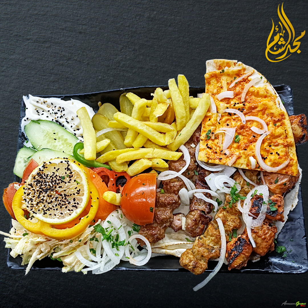 Chez Chawarma Majd Acham, nous vous invitons à découvrir la véritable cuisine syrienne, préparée avec passion, tradition et des ingrédients frais de première qualité. Notre spécialité : la shawarma, les grillades orientales et une sélection variée de plats typiques qui raviront les amateurs de cuisine du Levant.